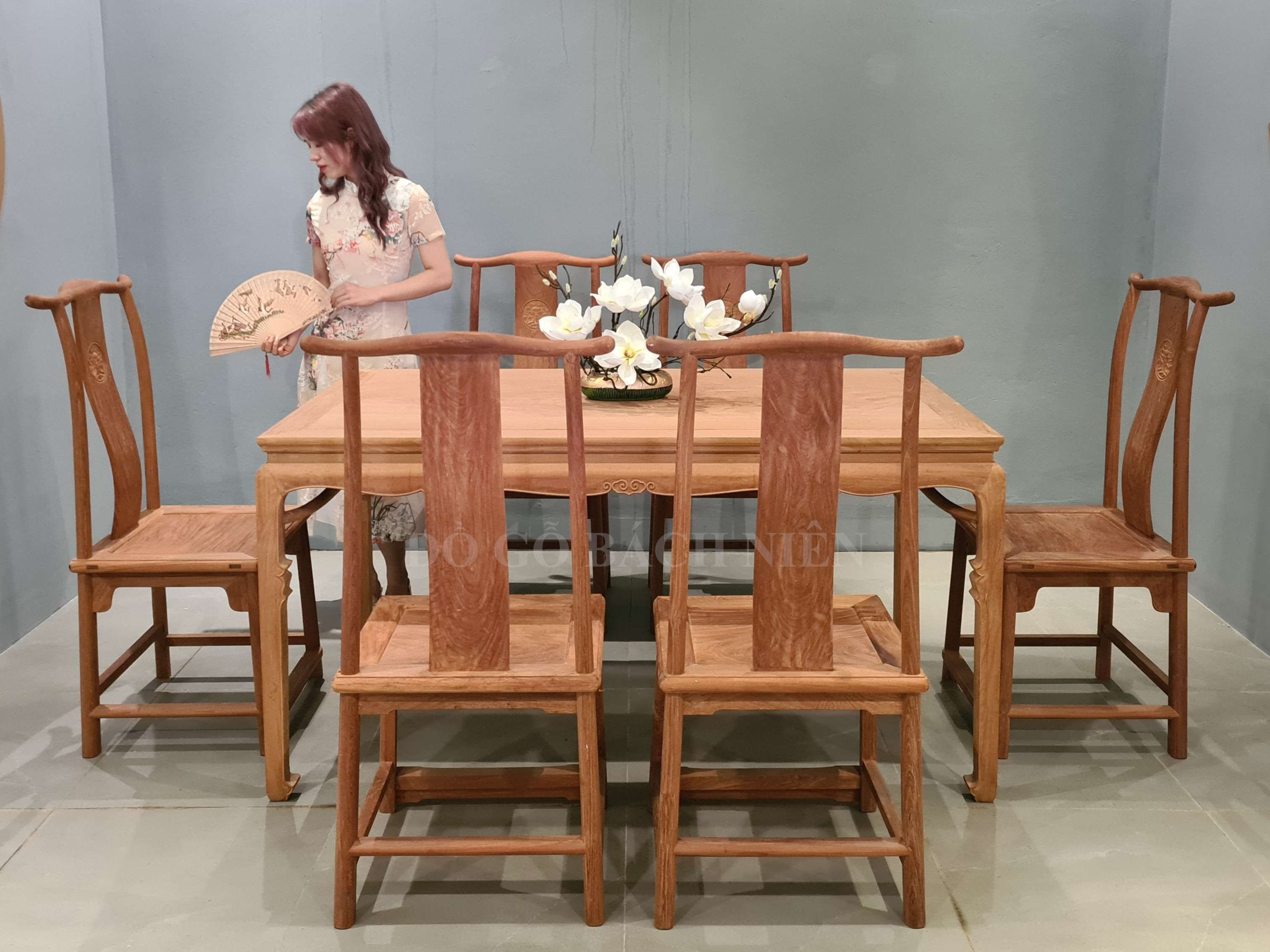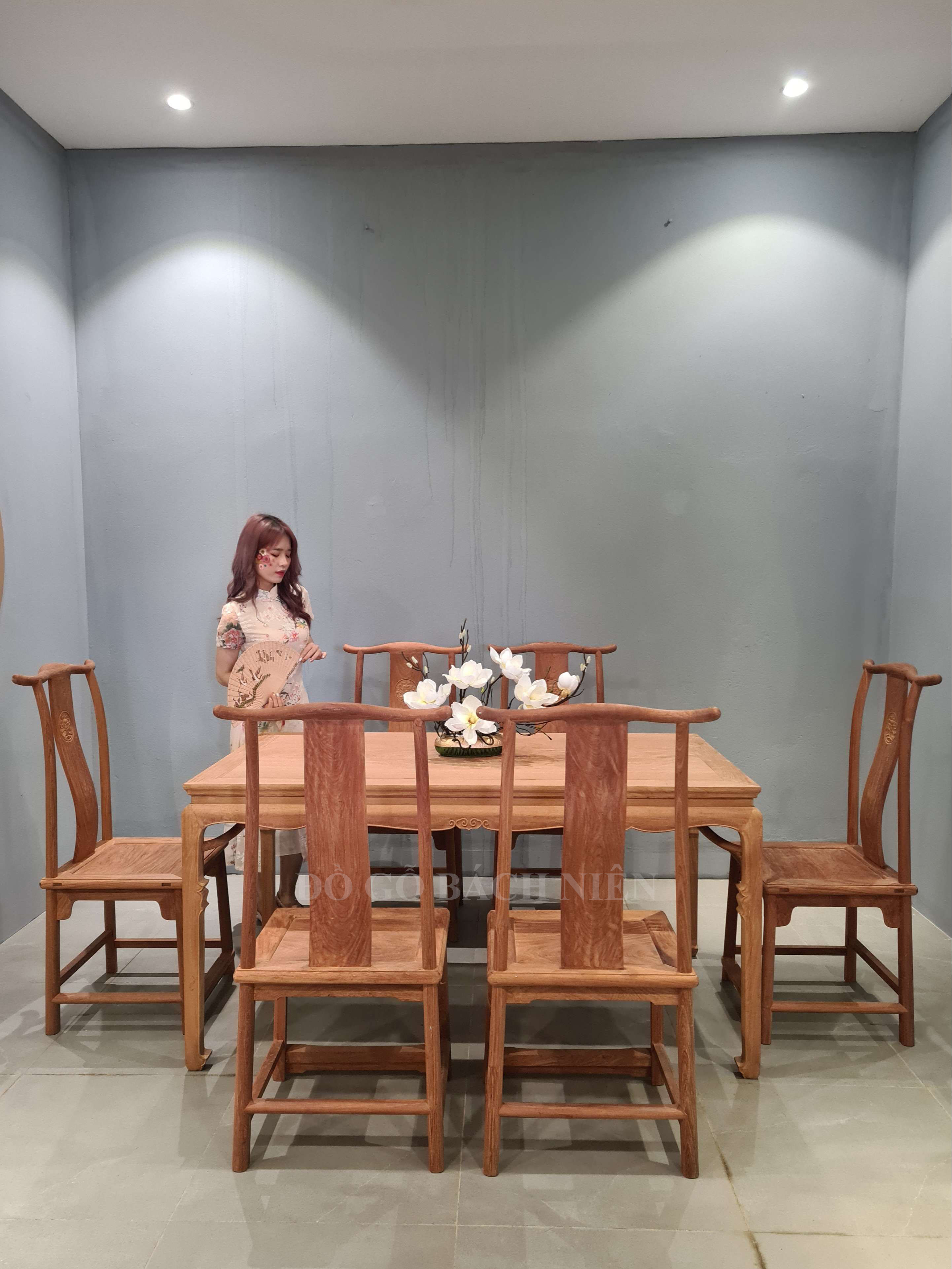 Bộ bàn ăn CN Á Đông gỗ tự nhiên nguyên khối sang trọng với đường vân tự nhiên mang diện mạo tươi sáng và tràn đầy năng lượng tích cực