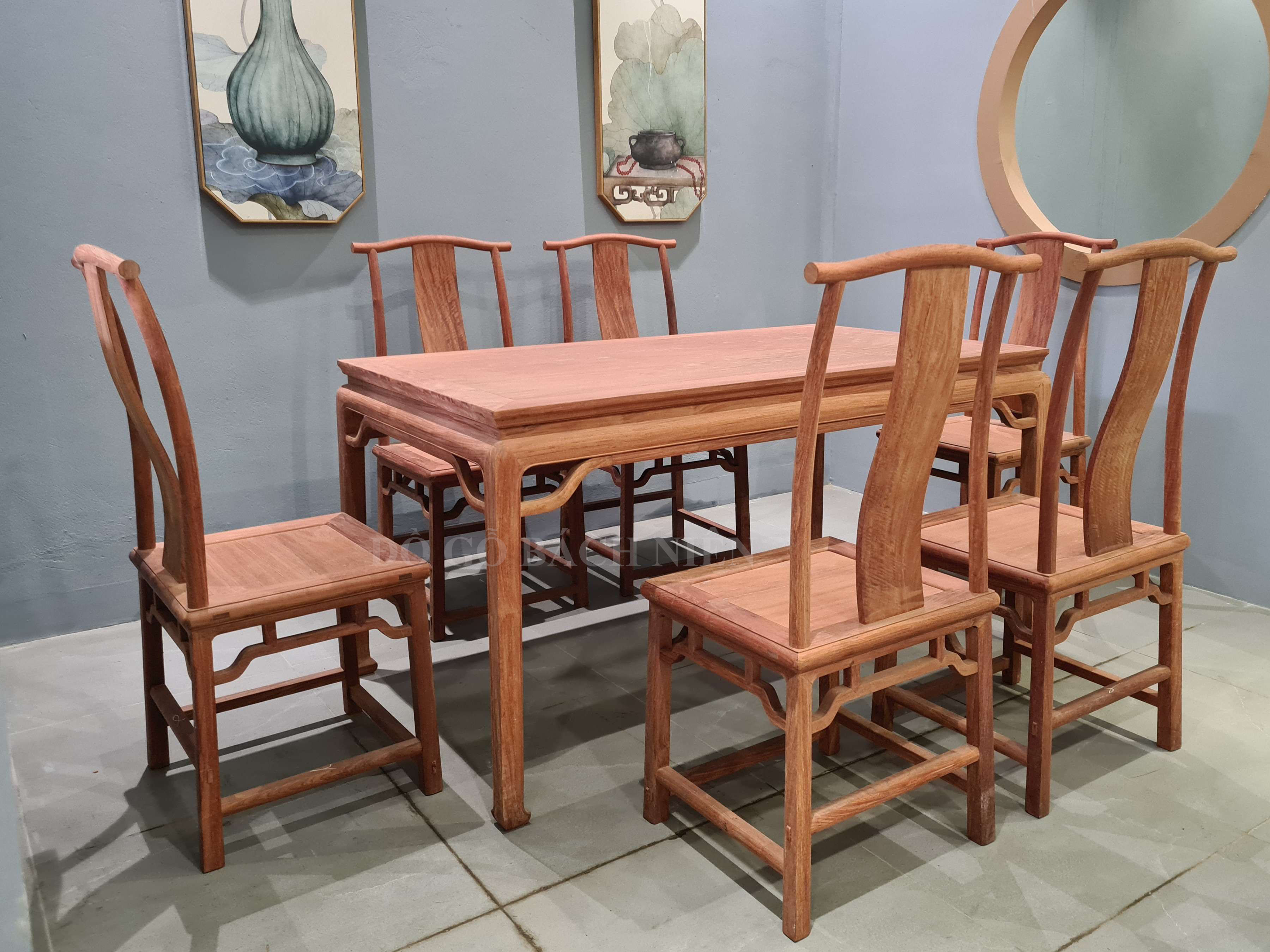 Bộ bàn ăn CN Á Đông gỗ tự nhiên nguyên khối sang trọng với đường vân tự nhiên mang diện mạo tươi sáng và tràn đầy năng lượng tích cực