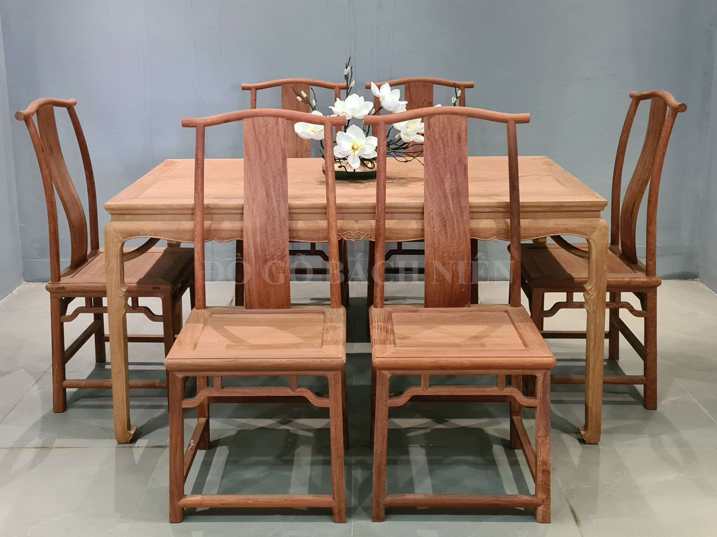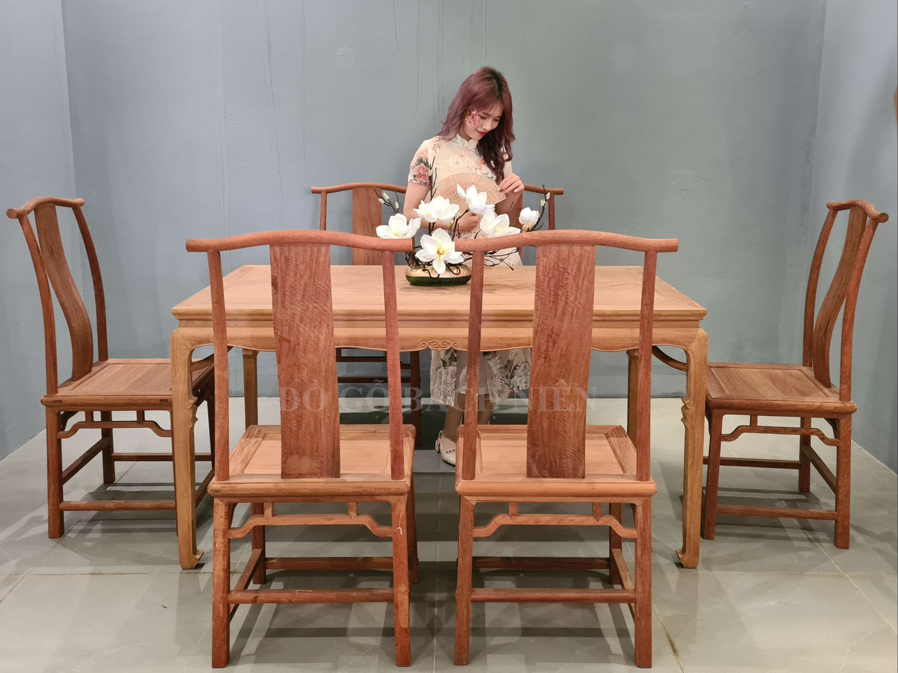 Bộ bàn ăn CN Á Đông gỗ tự nhiên nguyên khối sang trọng với đường vân tự nhiên mang diện mạo tươi sáng và tràn đầy năng lượng tích cực