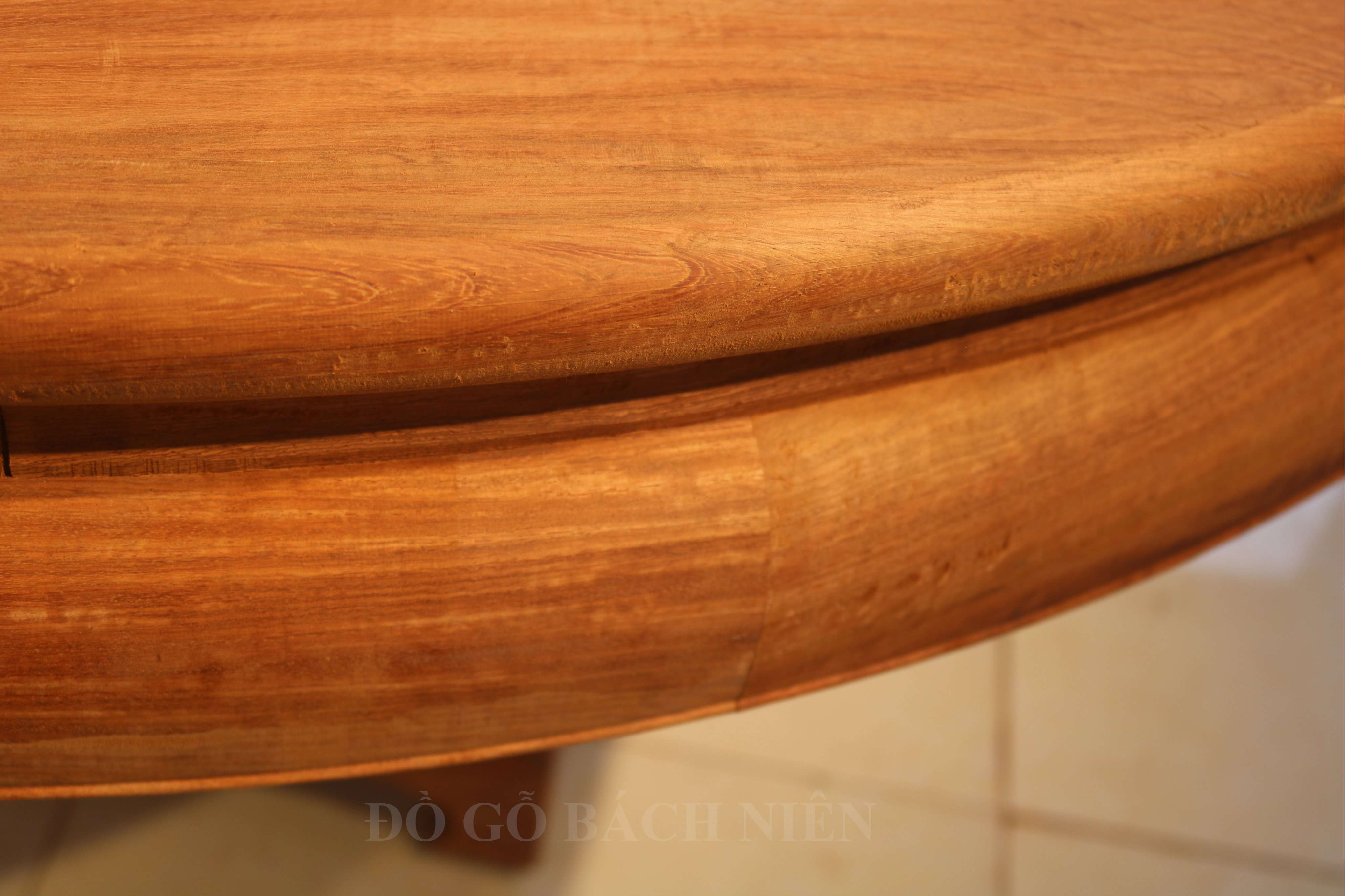 Từng đường vân gỗ được chọn lọc và sắp xếp hoa văn theo trật tự thẩm mỹ. Kết hợp các kỹ thuật chà nhám làm nhẵn mịn bề mặt, đánh trần làm nổi bật đường nét tự nhiên của vân gỗ. Tất cả đều được hoàn thiện bởi bàn tay của các nghệ nhân Đồ Gỗ Bách Niên.