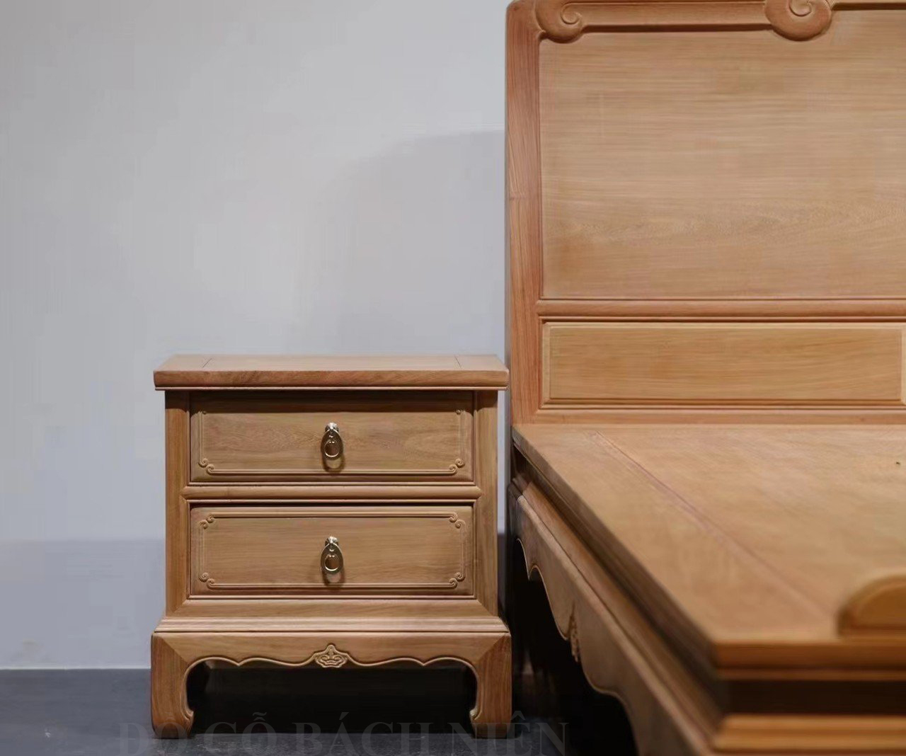 Ngăn kéo trên và dưới của bàn đầu giườngdạng hình hộp thống nhất với giường Có thiết kế tay cầm sử dụng rất tiện lợi.